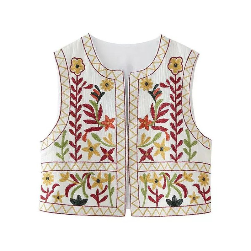 جلیقه کتان گلدوزی شده